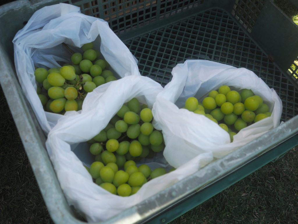 すごく大きい房ですね。小粒でとても甘みがあります。